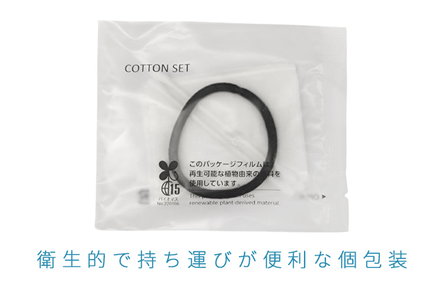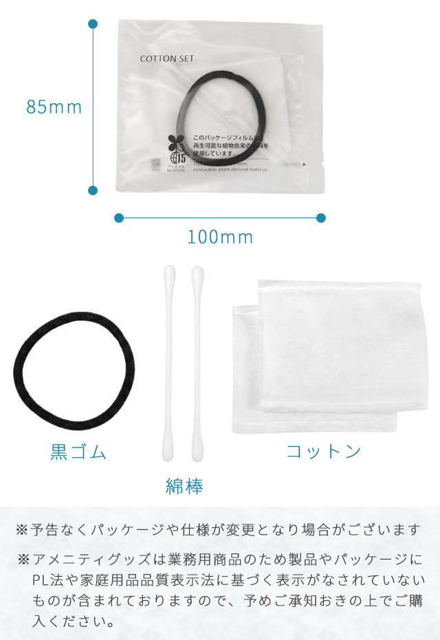 綿棒×2、コットン×2、ヘアゴム×1