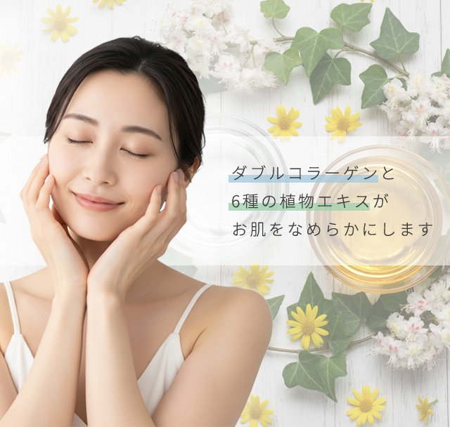 角質層深くまで浸透し、ダブルコラーゲンがお肌にピンと弾けるハリ感をもたらします。