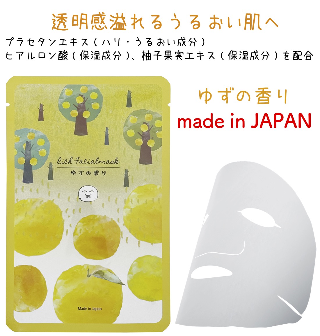ゆずの香り リッチフェイシャルマスク 美容液 マスク パック エステ フェイス 日本製 景品 粗品 プレゼント プチギフト イベント 記念品 店舗 ケア