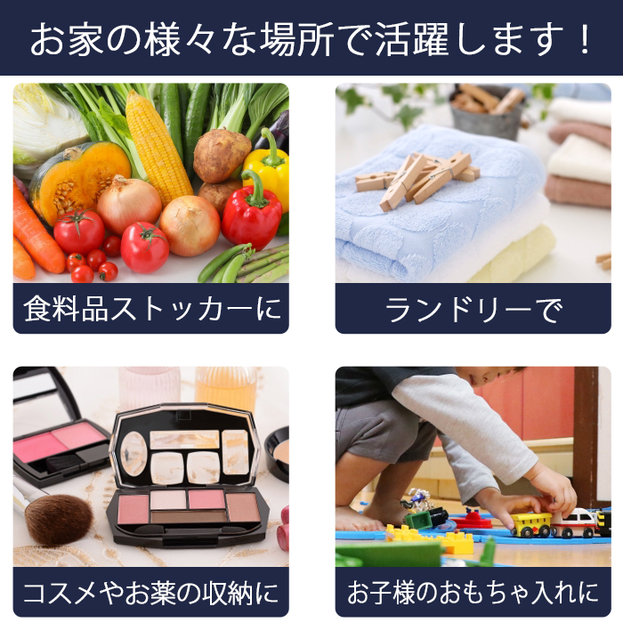 キッチン雑貨、趣味の小物、コスメやお薬など必要な場所ですぐ取り出せるサイズ展開。