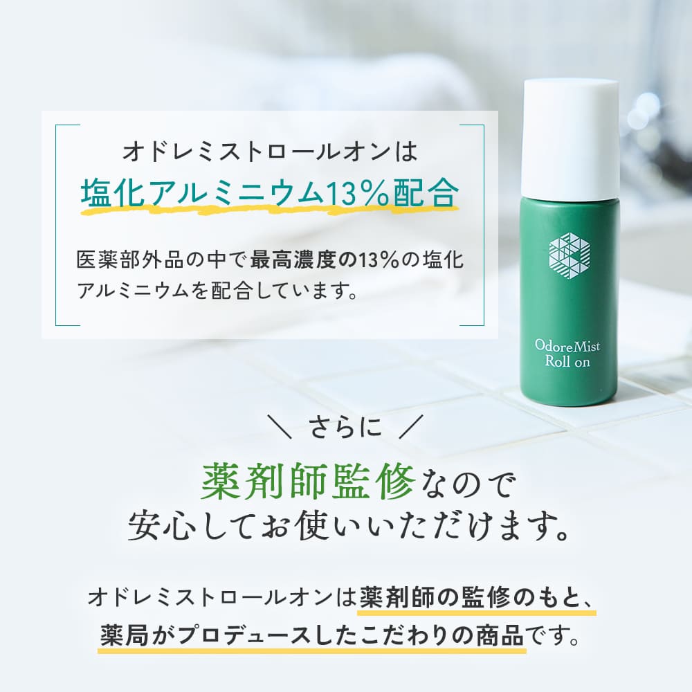 オドレミストロールオンは、塩化アルミニウム13%配合の制汗・防臭剤です。