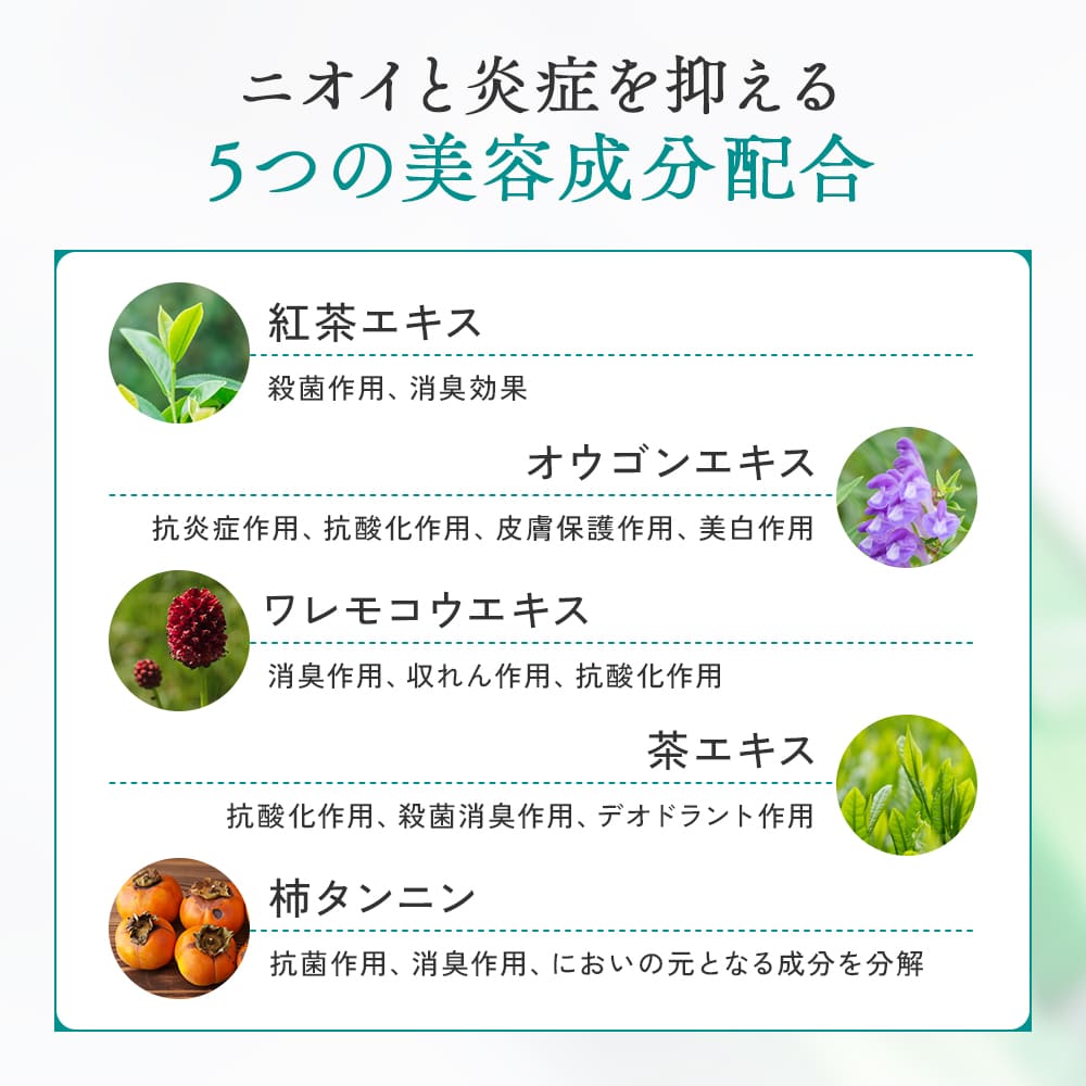塩化アルミニウムは、防臭・制汗にすぐれた効果を発揮し、無臭でべとつかず、肌を爽快にしてくれます。