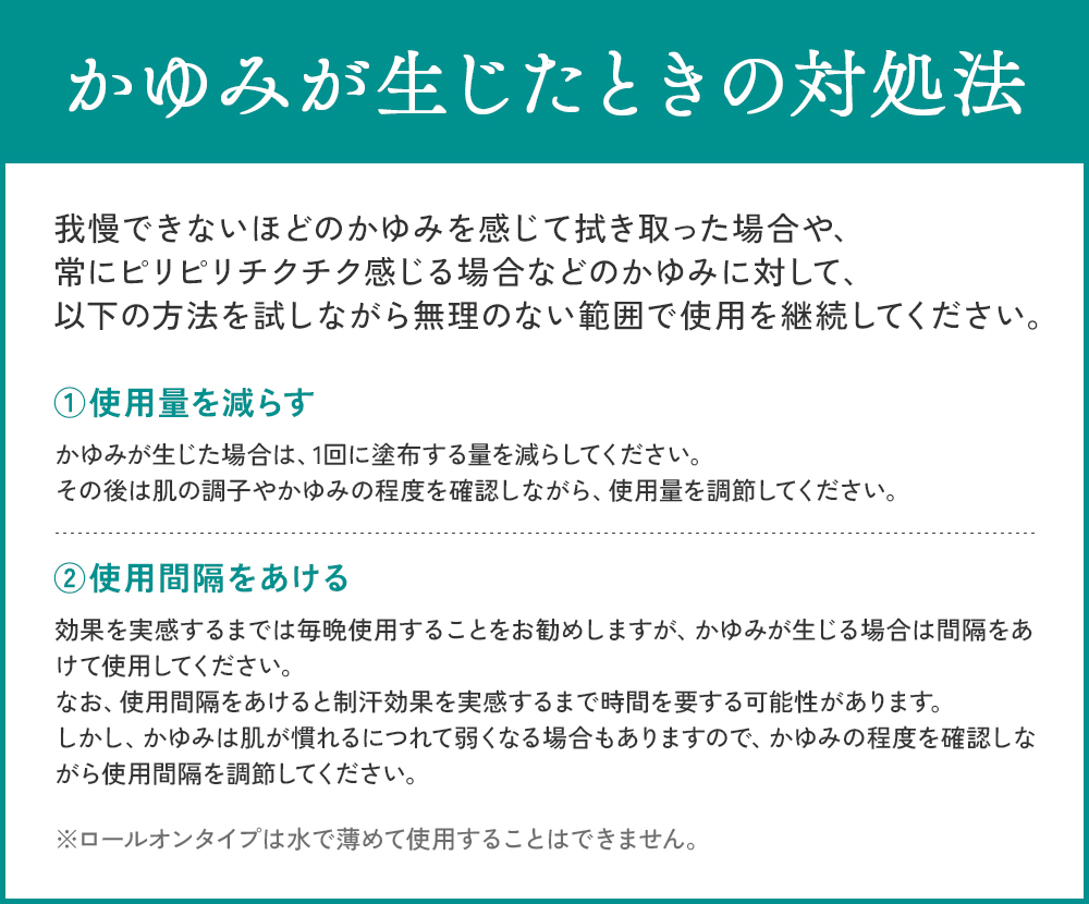 ● 少量でも効果がありますが、効果が薄いと感じる方は多めに塗布してください